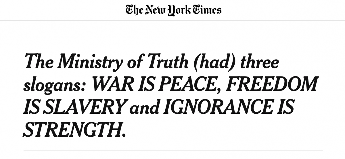 Orwell también usa «1984» para explorar lo que sucede cuando la comunicación se ajusta a los deseos del poder político en lugar de a los hechos demostrables.